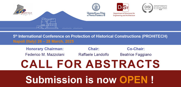 E’ aperta la call for abstracts per il congresso Internazionale PROHITECH2025 (Protection of Historical Constructions) organizzato a Napoli dal 26 al 28 Marzo 2025.